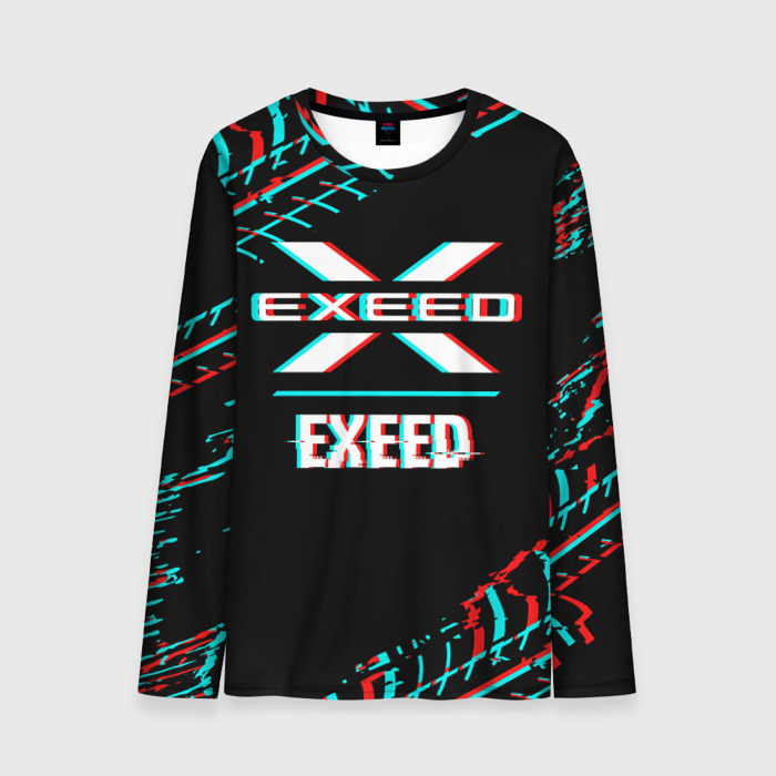 Мужской лонгслив 3D Значок Exeed в стиле glitch на темном фоне
