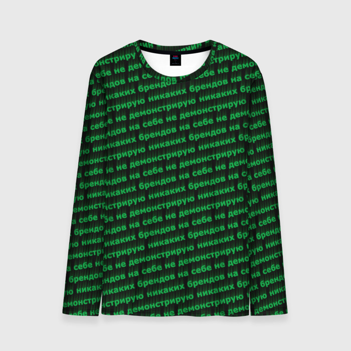 Мужской лонгслив 3D с принтом Никаких брендов зелёный