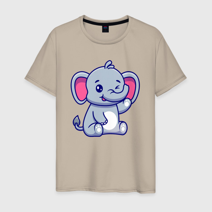 Мужская футболка хлопок с принтом Подмигивающий слоник