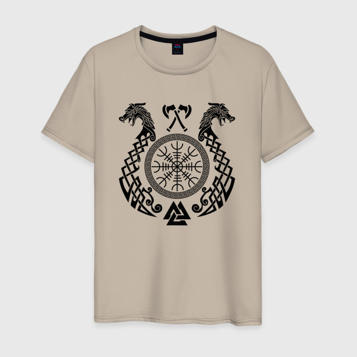 Мужская футболка хлопок Символика шлем ужаса агисхъяльм в драккаре