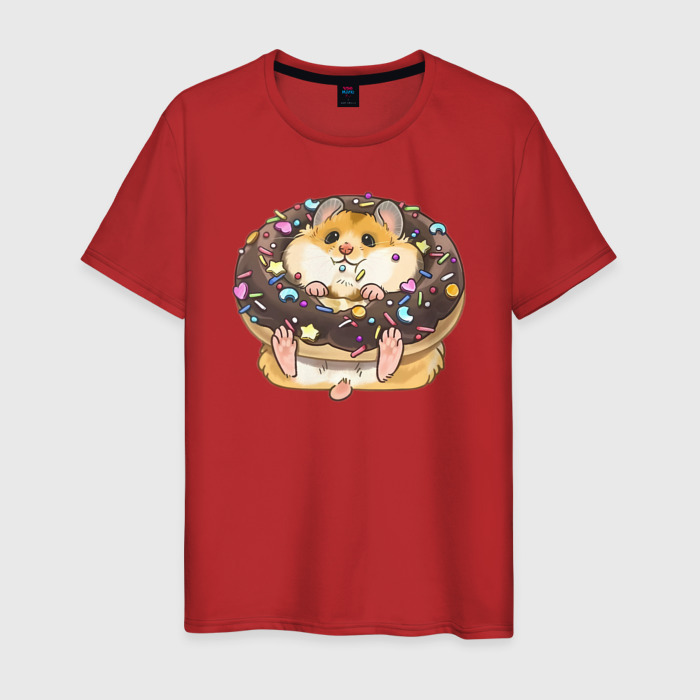 Мужская футболка хлопок с принтом Хомяк с пончиком