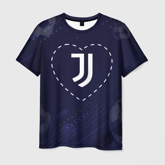 Мужская футболка 3D Лого Juventus в сердечке на фоне мячей