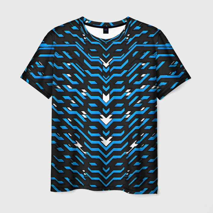 Мужская футболка 3D Агрессивный чёрно синий паттерн