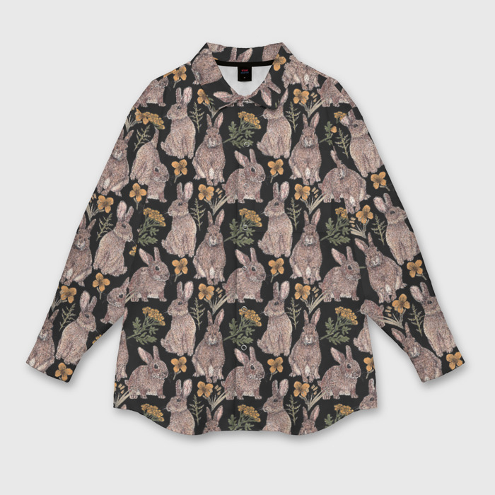 Мужская рубашка oversize 3D Зайцы и пижма