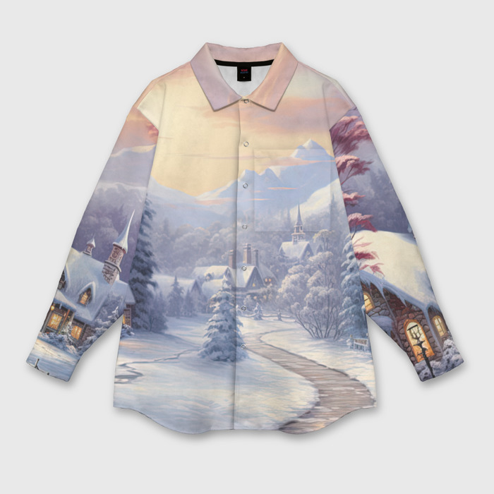 Мужская рубашка oversize 3D МОРОЗНОЕ УТРО С АРОМАТОМ ХВОИ