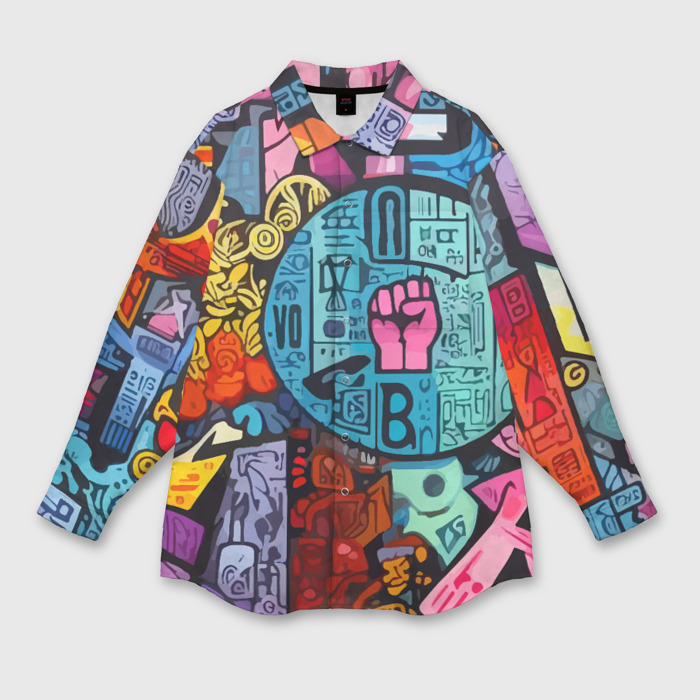 Мужская рубашка oversize 3D КУЛАК ГРАФФИТИ