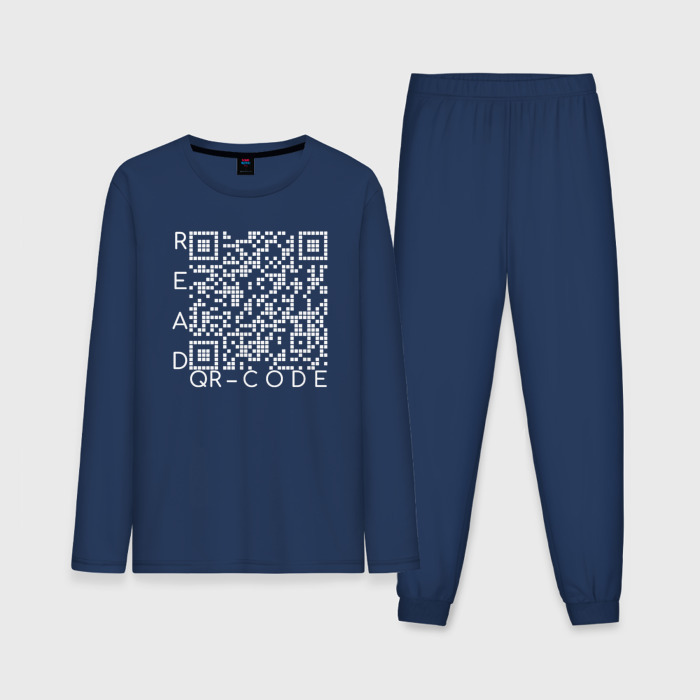 Мужская пижама с лонгсливом хлопок Белый QR code: Моя жизнь мои правила