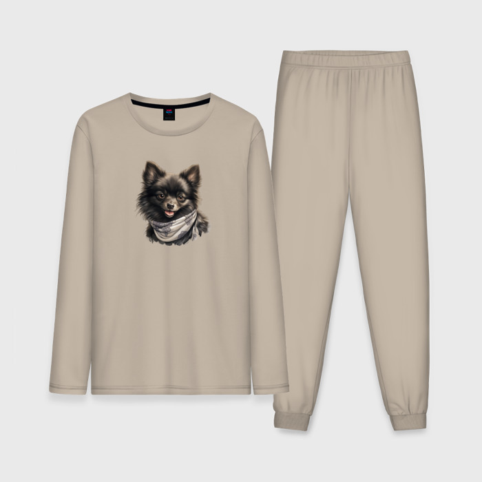 Мужская пижама с лонгсливом хлопок Черный шпиц в бандане