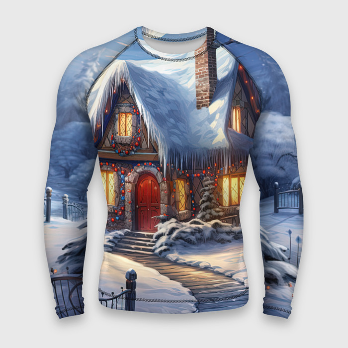 Мужские рашгарды 3D НОВОГОДНИЙ ЗАГОРОДНЫЙ ДОМ