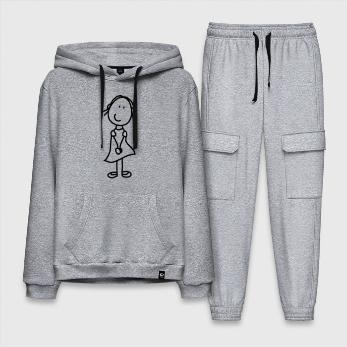 Мужской костюм хлопок с толстовкой ЧЕЛОВЕЧКИ С ЦВЕТКОМ ПАРНАЯ ЖЕН