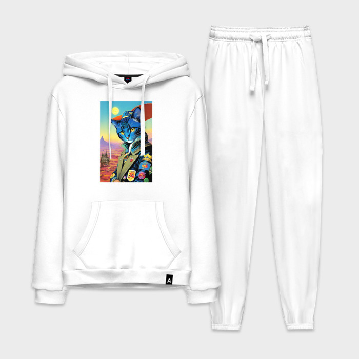 Мужской костюм хлопок с толстовкой МОДНЫЙ КОТ РЕТРО НЕЙРОСЕТЬ