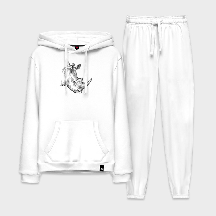 Мужской костюм хлопок с толстовкой Голова носорога гравюра