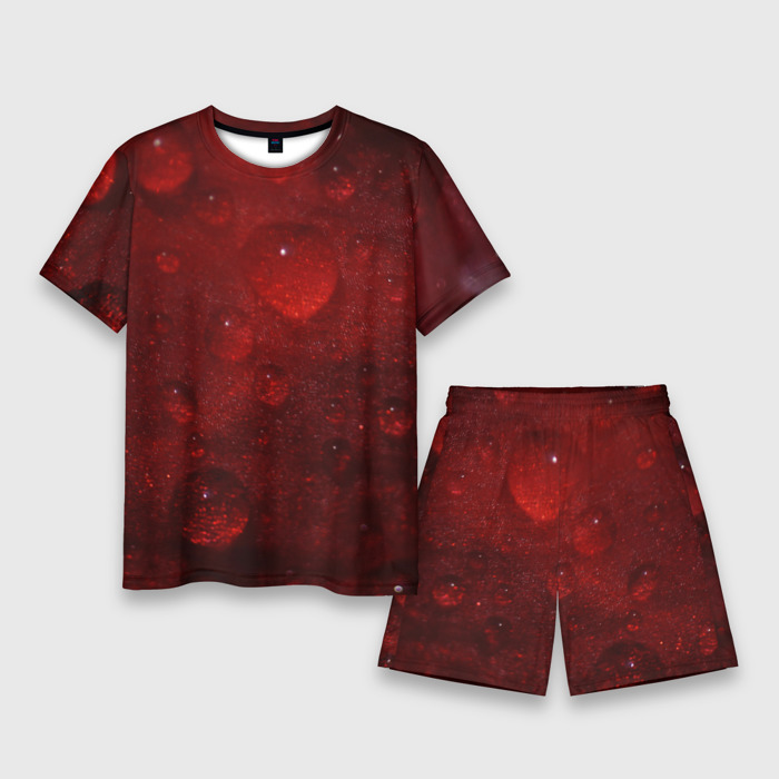 Мужские костюмы с шортами ЦВЕТОК КРАСНЫЙ С ВОДЯНЫМИ КАПЛЯМИ