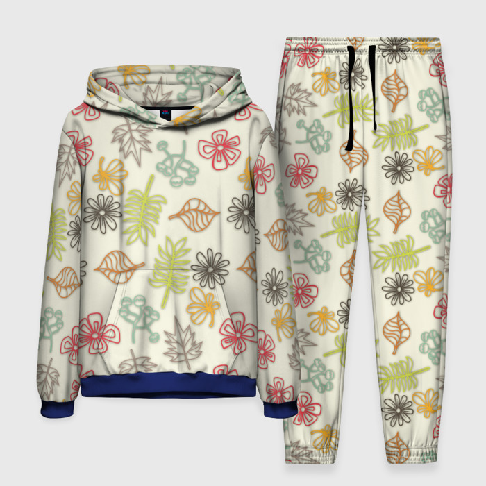 Мужской костюм 3D (с толстовкой) ЦВЕТЫ И ЛИСТОЧКИ