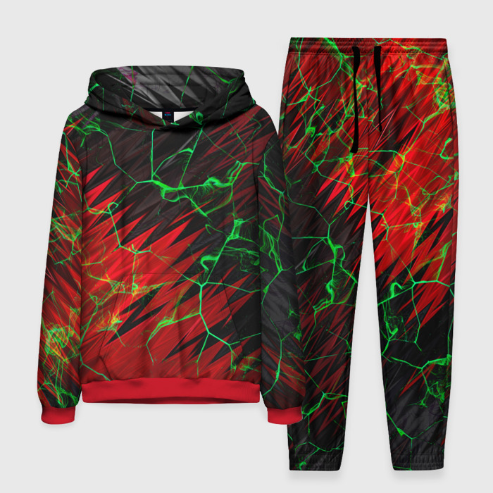 Мужской костюм 3D (с толстовкой) ЗЕЛЁНЫЕ ТРЕЩИНЫ УЗОРЫ