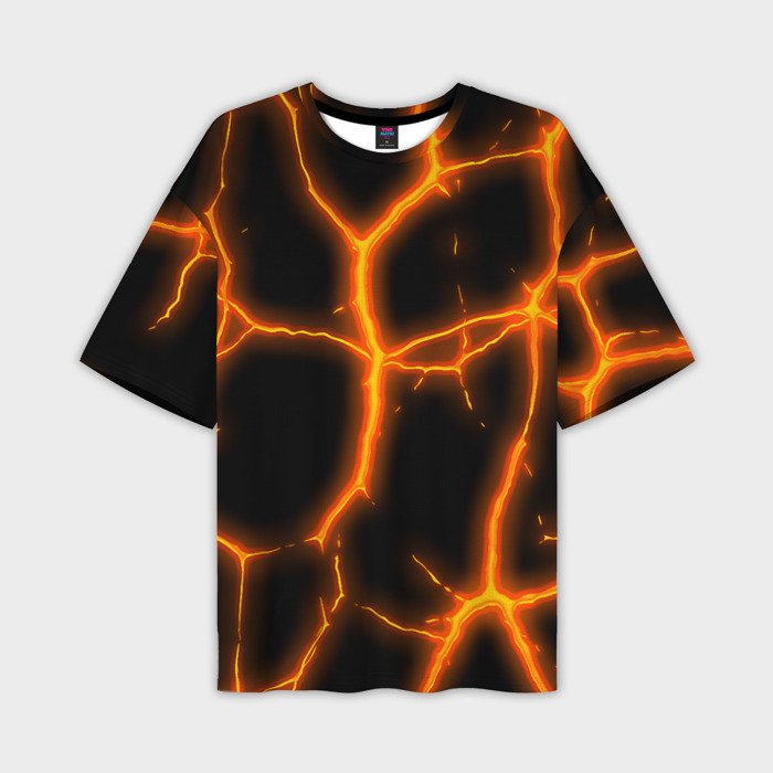 Мужская футболка OVERSIZE 3D Оранжевые неоновые трещины