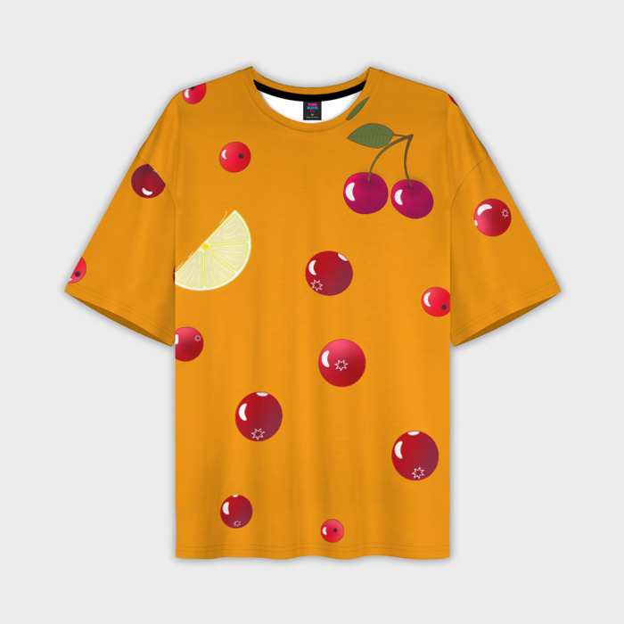Мужская футболка oversize 3D Ягоды и лимон, оранжевый фон