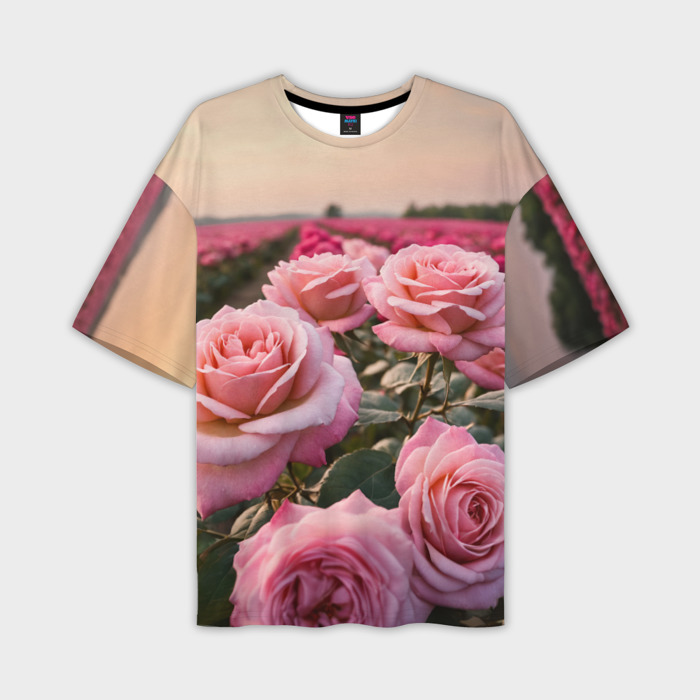 Мужские футболки OVERSIZE ПОЛЕ РОЗОВЫХ РОЗ