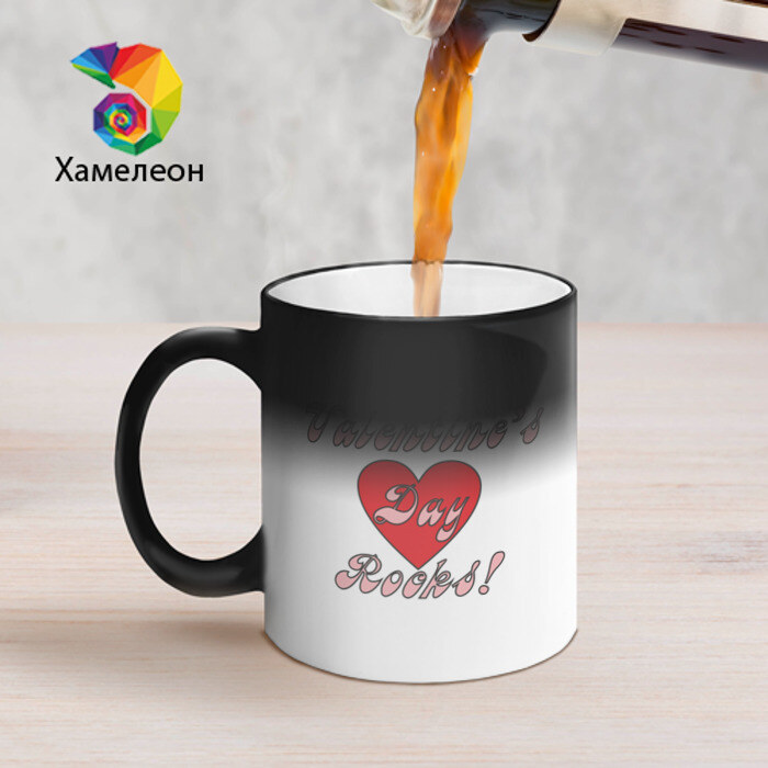 Кружка-сюрприз: пока в ней холодная вода, она будет оставаться однотонной, а когда нальете горячую — проявится принт. Принт начинает проявляться буквально через 10 секунд, в течение минуты он будет виден полностью. Когда остынет, кружка вернется к изначальному цвету.