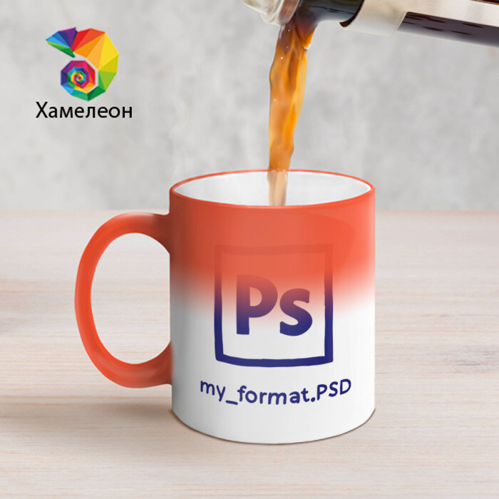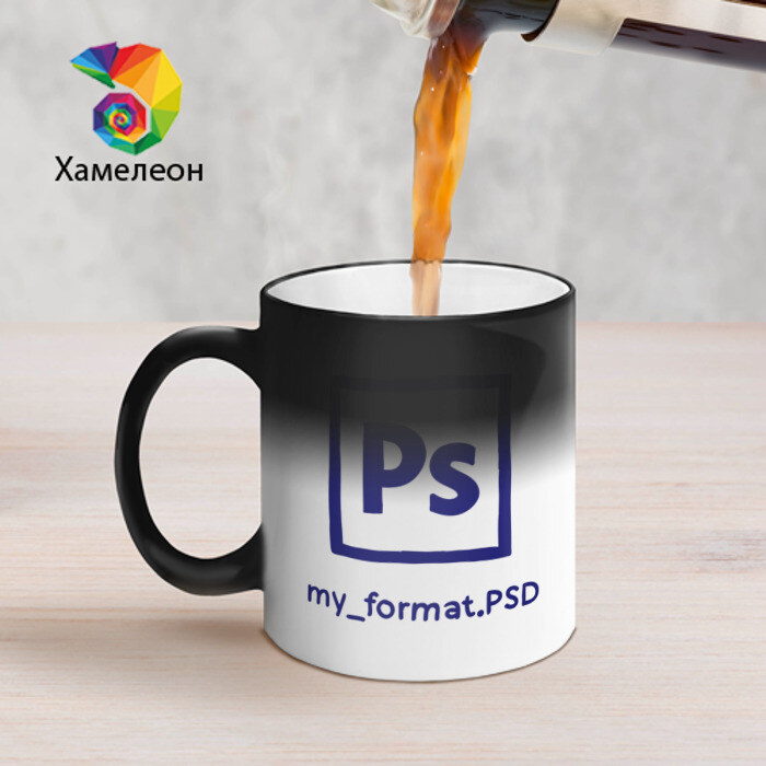 Кружка-сюрприз: пока в ней холодная вода, она будет оставаться однотонной, а когда нальете горячую — проявится принт. Принт начинает проявляться буквально через 10 секунд, в течение минуты он будет виден полностью. Когда остынет, кружка вернется к изначальному цвету.