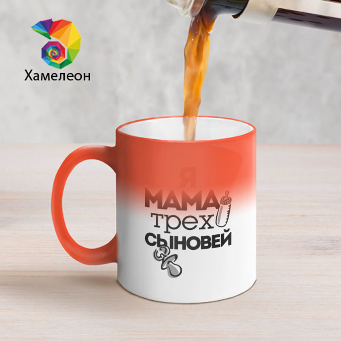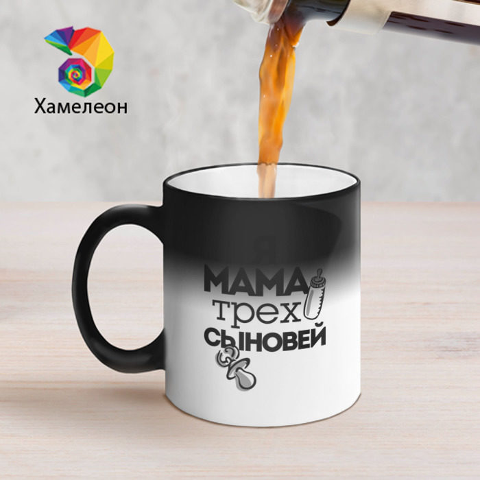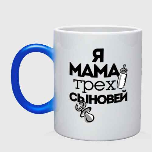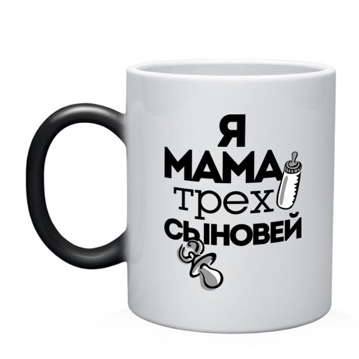 Кружка хамелеон с принтом Я мама трёх сыновей