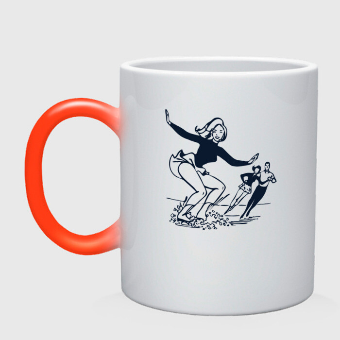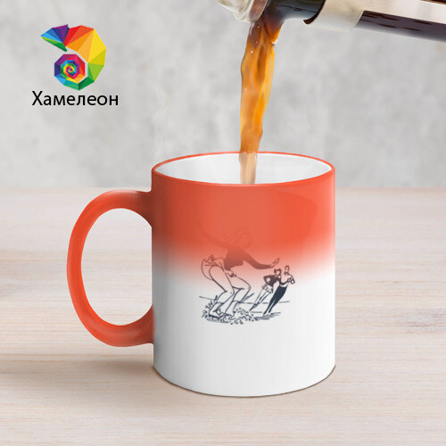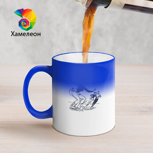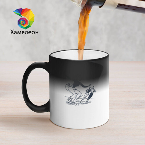 Кружка-сюрприз: пока в ней холодная вода, она будет оставаться однотонной, а когда нальете горячую — проявится принт. Принт начинает проявляться буквально через 10 секунд, в течение минуты он будет виден полностью. Когда остынет, кружка вернется к изначальному цвету.