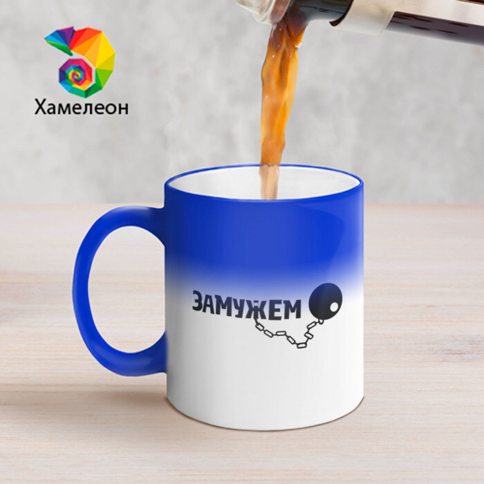 Кружка-сюрприз: пока в ней холодная вода, она будет оставаться однотонной, а когда нальете горячую — проявится принт. Принт начинает проявляться буквально через 10 секунд, в течение минуты он будет виден полностью. Когда остынет, кружка вернется к изначальному цвету.