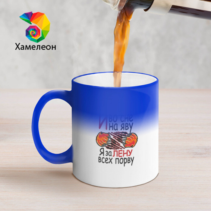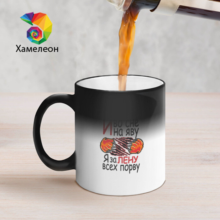 Кружка хамелеон с принтом Лена и во сне и наяву