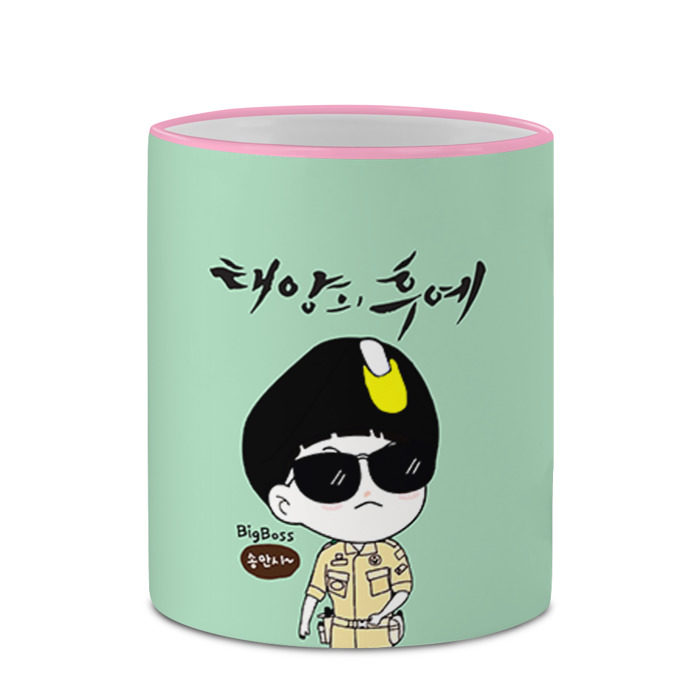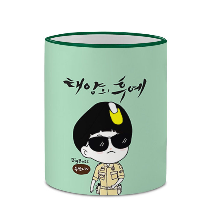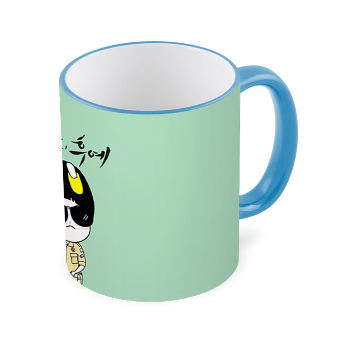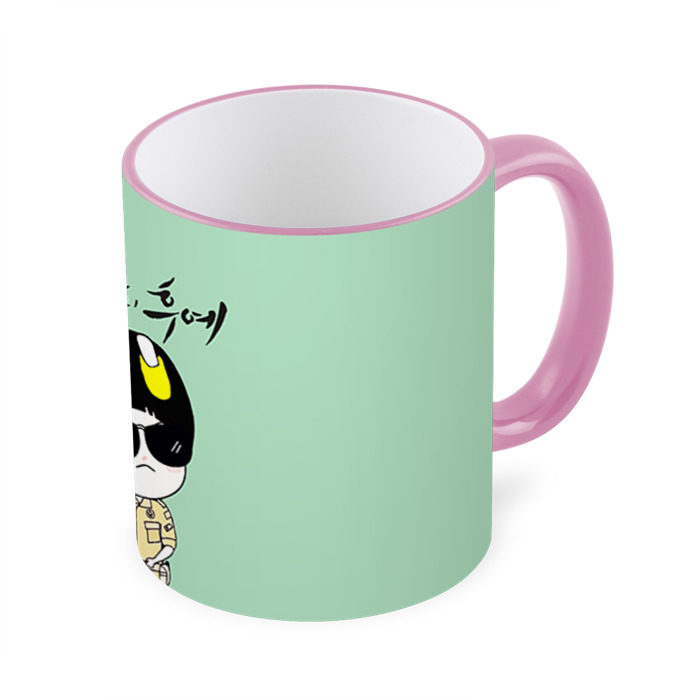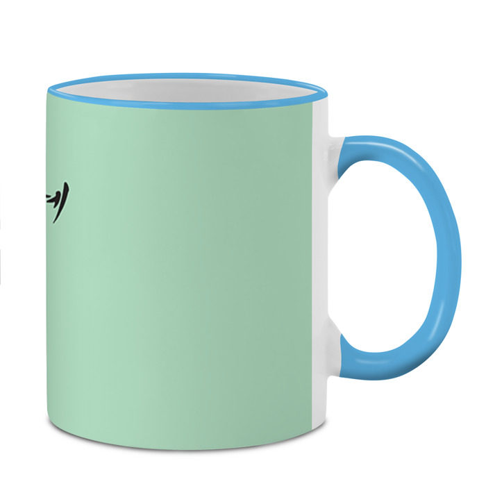 Кружка с принтом, который наносится по всей внешней поверхности, кроме прямоугольника у ручки. У кружки цветной ободок сверху и ручка. Можно заказать со своим дизайном.