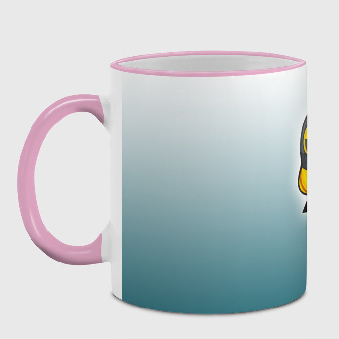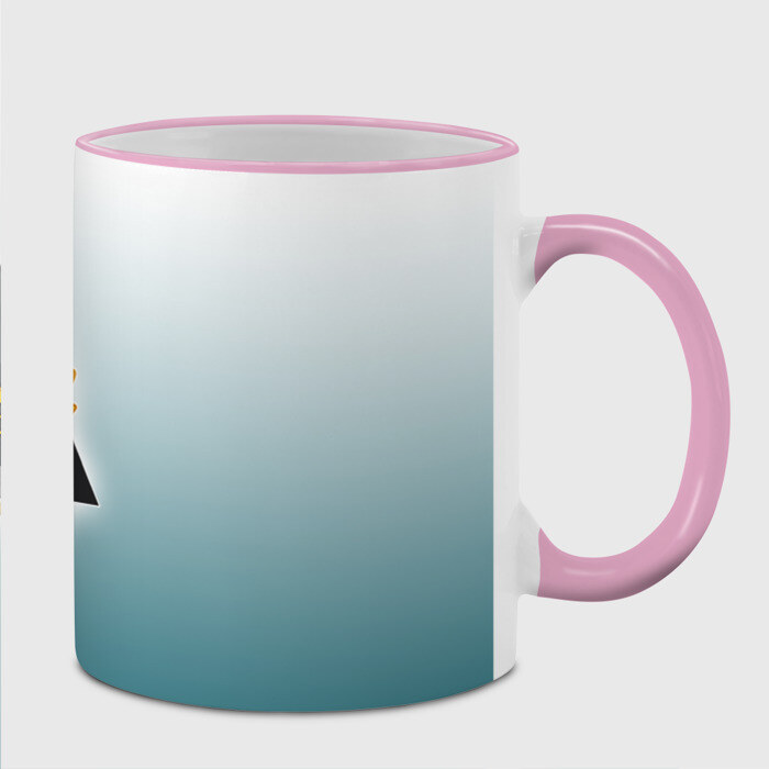 Кружка с принтом, который наносится по всей внешней поверхности, кроме прямоугольника у ручки. У кружки цветной ободок сверху и ручка. Можно заказать со своим дизайном.