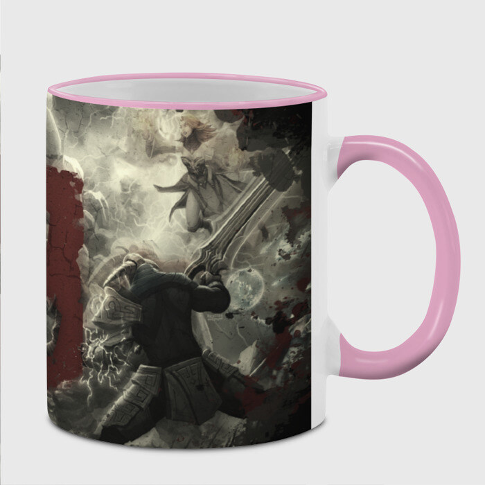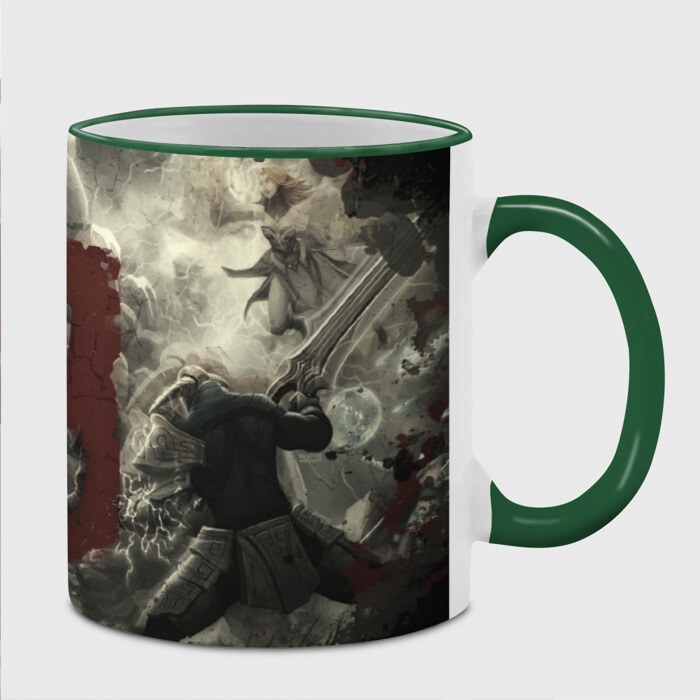 Кружка с принтом, который наносится по всей внешней поверхности, кроме прямоугольника у ручки. У кружки цветной ободок сверху и ручка. Можно заказать со своим дизайном.