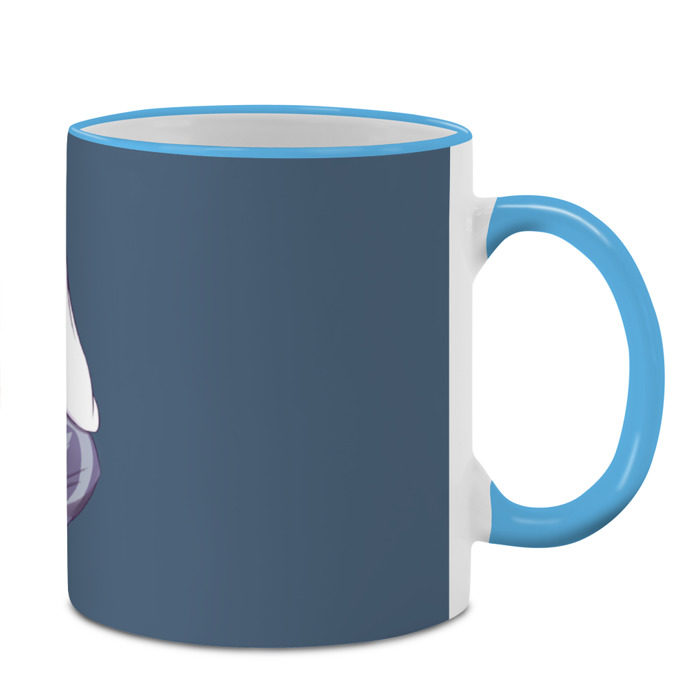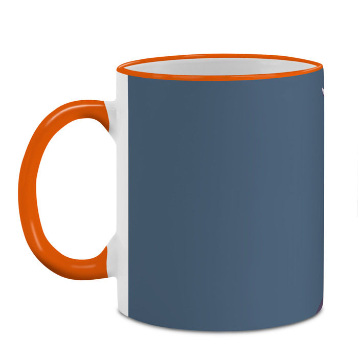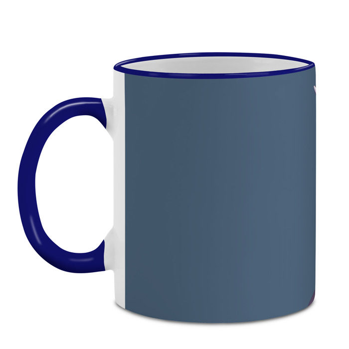 Кружка с принтом, который наносится по всей внешней поверхности, кроме прямоугольника у ручки. У кружки цветной ободок сверху и ручка. Можно заказать со своим дизайном.