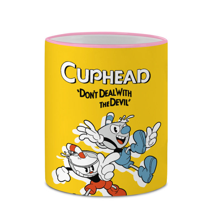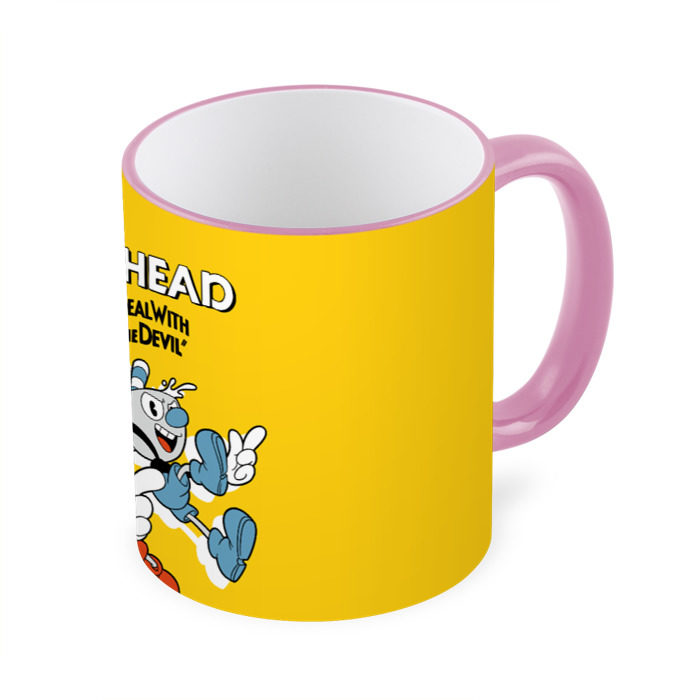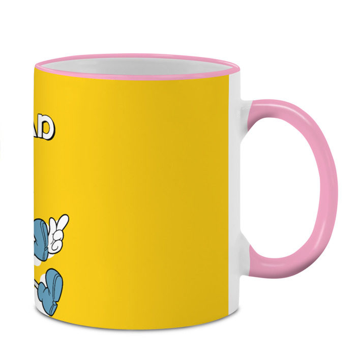 Кружка с принтом, который наносится по всей внешней поверхности, кроме прямоугольника у ручки. У кружки цветной ободок сверху и ручка. Можно заказать со своим дизайном.