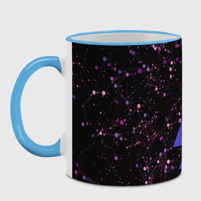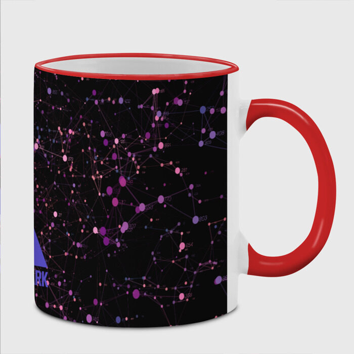Кружка с принтом, который наносится по всей внешней поверхности, кроме прямоугольника у ручки. У кружки цветной ободок сверху и ручка. Можно заказать со своим дизайном.