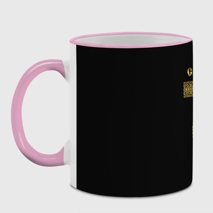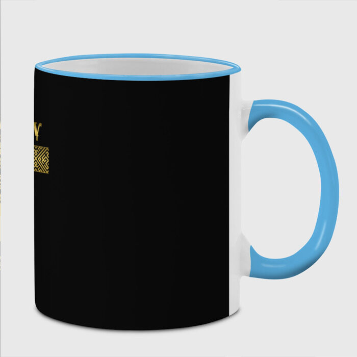 Кружка с принтом, который наносится по всей внешней поверхности, кроме прямоугольника у ручки. У кружки цветной ободок сверху и ручка. Можно заказать со своим дизайном.