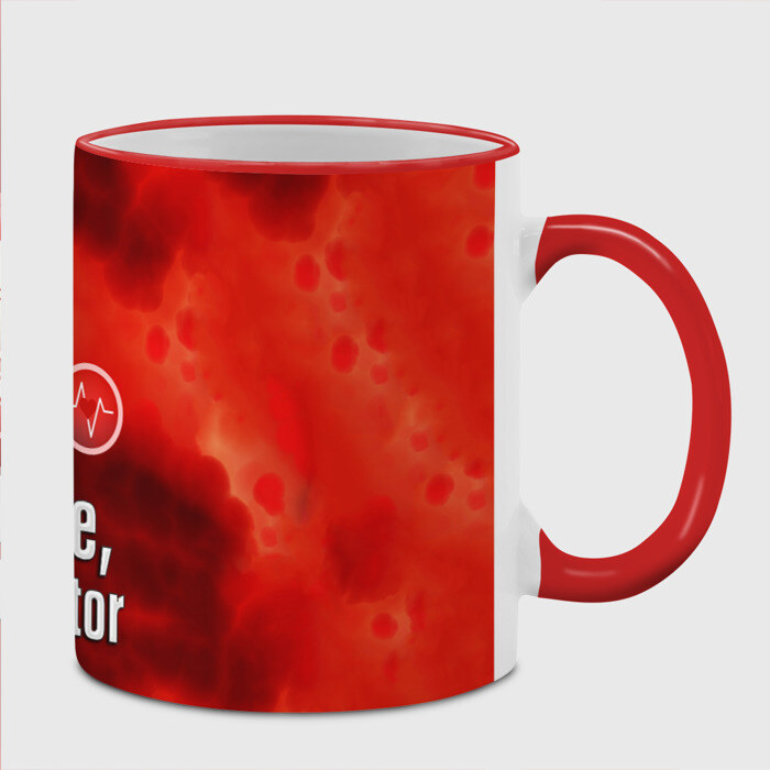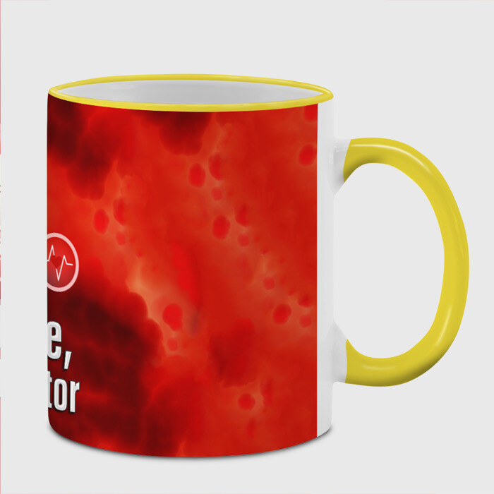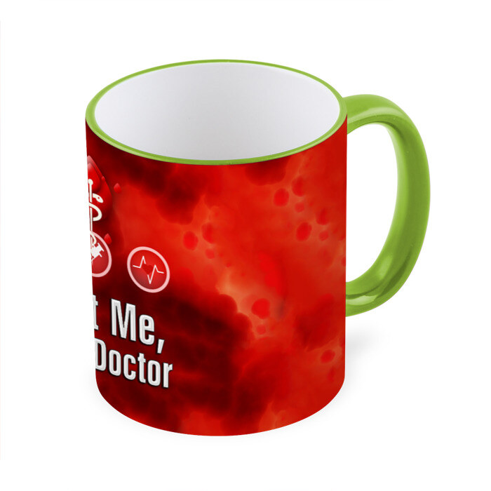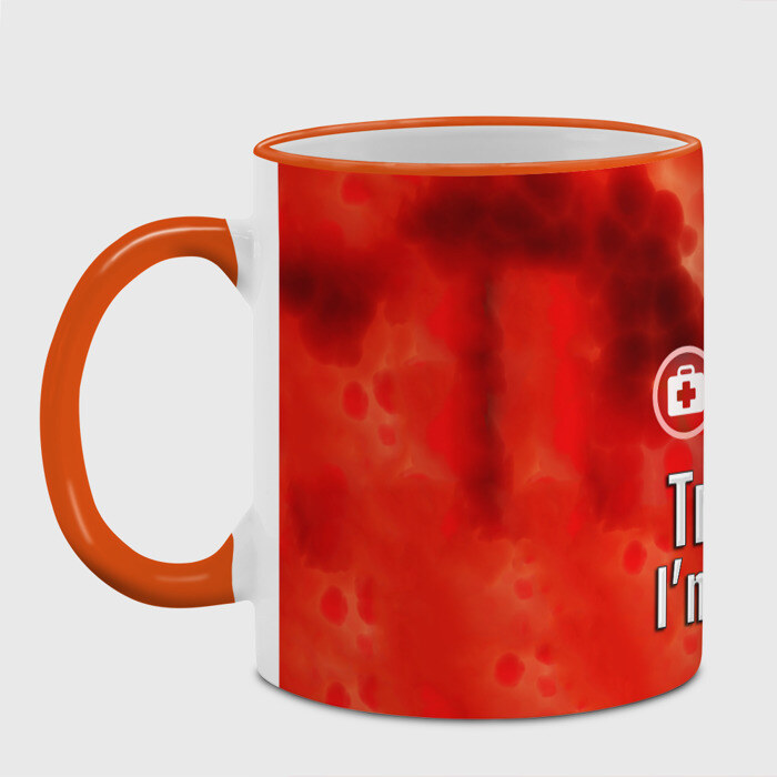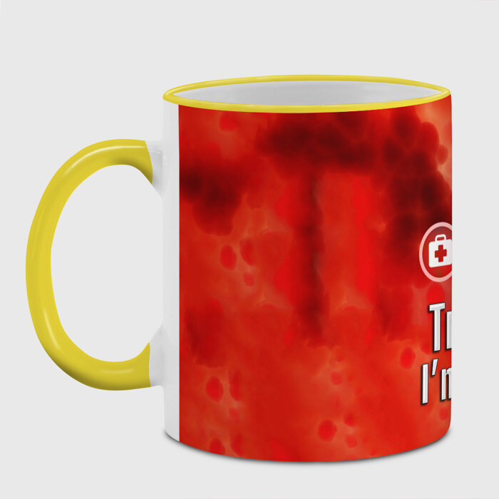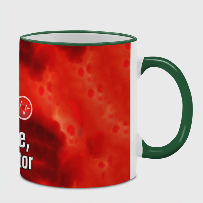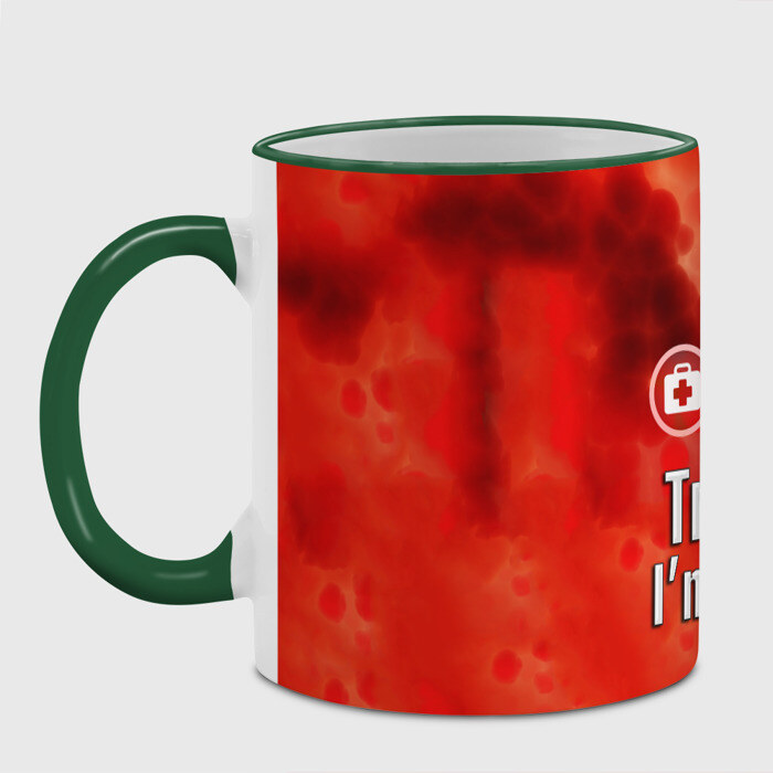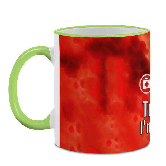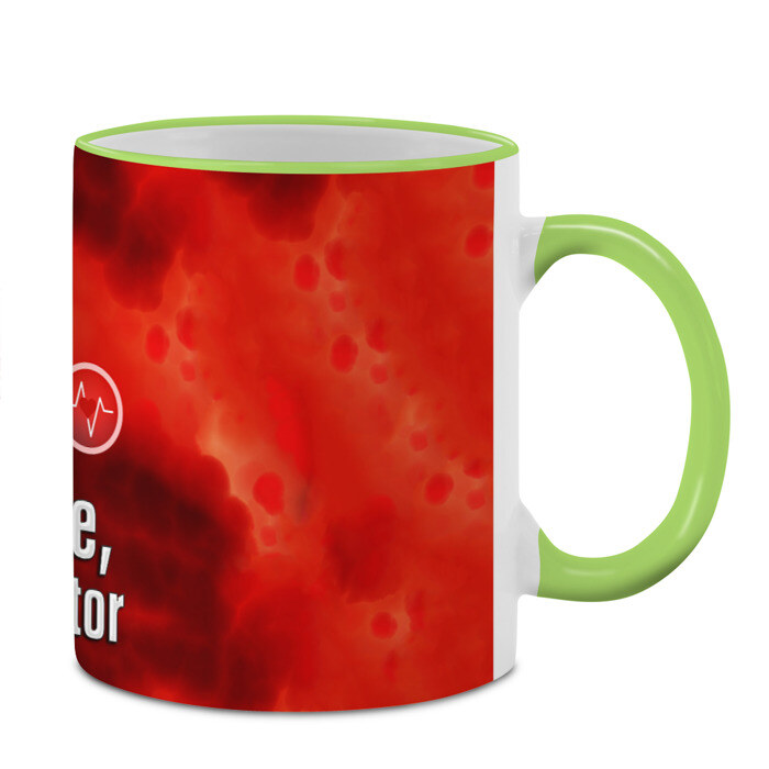 Кружка с принтом, который наносится по всей внешней поверхности, кроме прямоугольника у ручки. У кружки цветной ободок сверху и ручка. Можно заказать со своим дизайном.