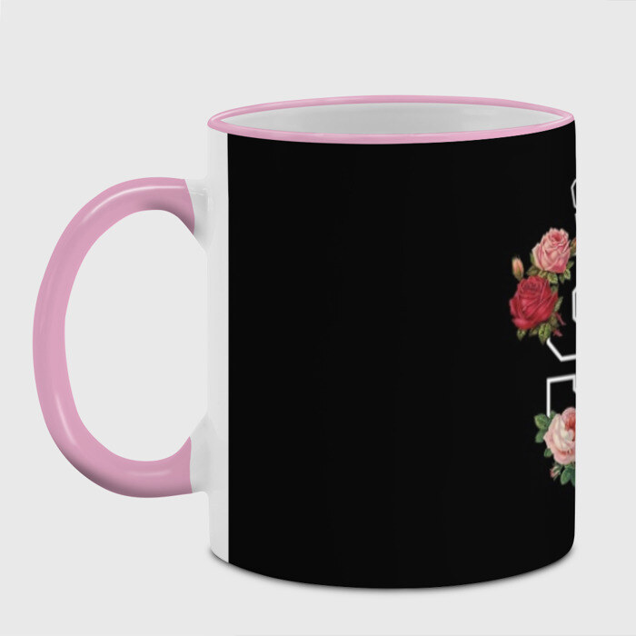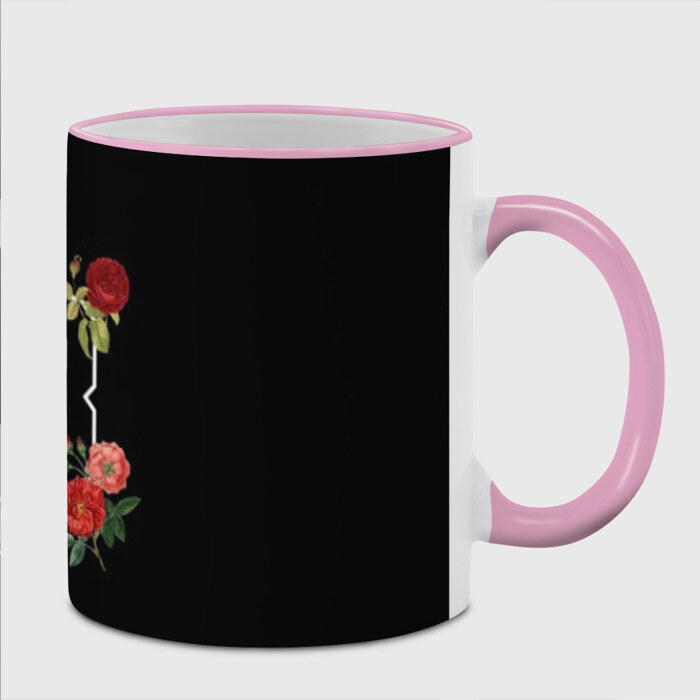 Кружка с принтом, который наносится по всей внешней поверхности, кроме прямоугольника у ручки. У кружки цветной ободок сверху и ручка. Можно заказать со своим дизайном.