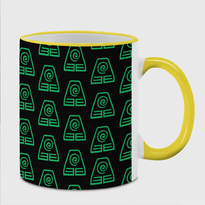 Кружка с принтом, который наносится по всей внешней поверхности, кроме прямоугольника у ручки. У кружки цветной ободок сверху и ручка. Можно заказать со своим дизайном.
