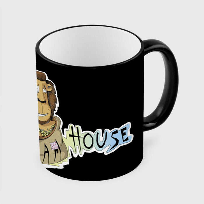 Кружка с принтом, который наносится по всей внешней поверхности, кроме прямоугольника у ручки. У кружки цветной ободок сверху и ручка. Можно заказать со своим дизайном.