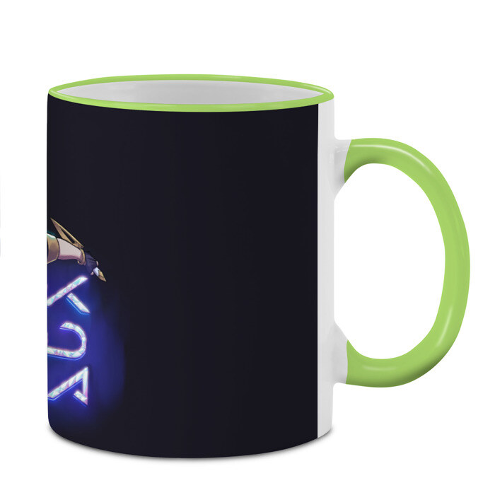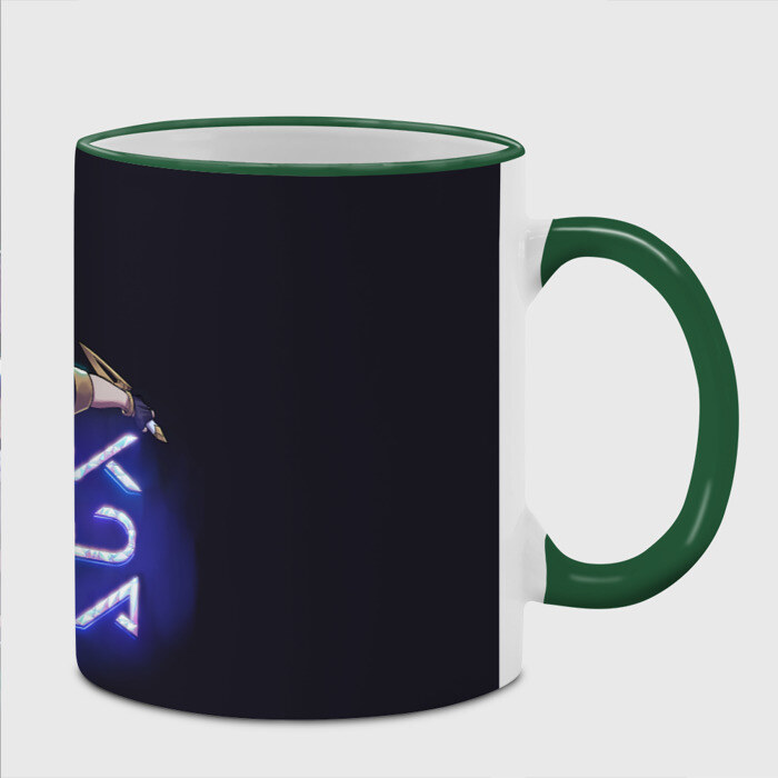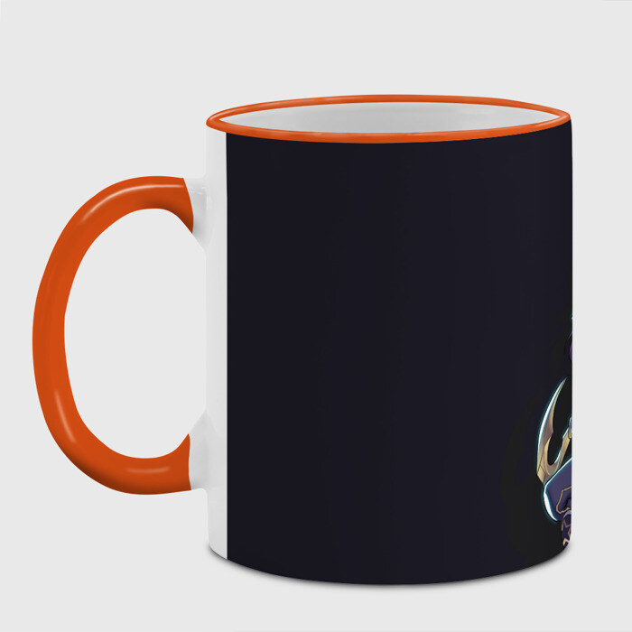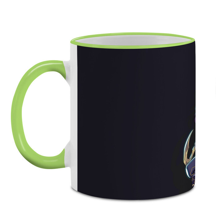 Кружка с принтом, который наносится по всей внешней поверхности, кроме прямоугольника у ручки. У кружки цветной ободок сверху и ручка. Можно заказать со своим дизайном.