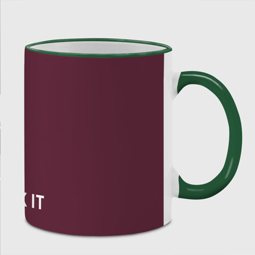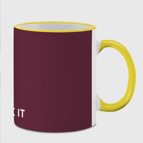 Кружка с принтом, который наносится по всей внешней поверхности, кроме прямоугольника у ручки. У кружки цветной ободок сверху и ручка. Можно заказать со своим дизайном.