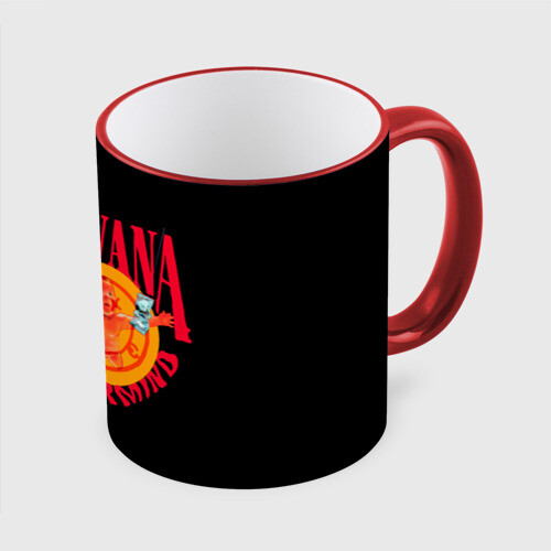 Кружка с принтом, который наносится по всей внешней поверхности, кроме прямоугольника у ручки. У кружки цветной ободок сверху и ручка. Можно заказать со своим дизайном.