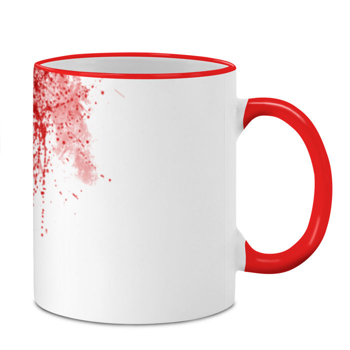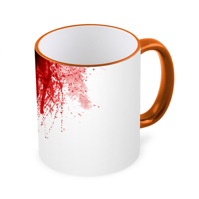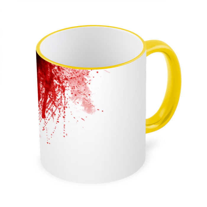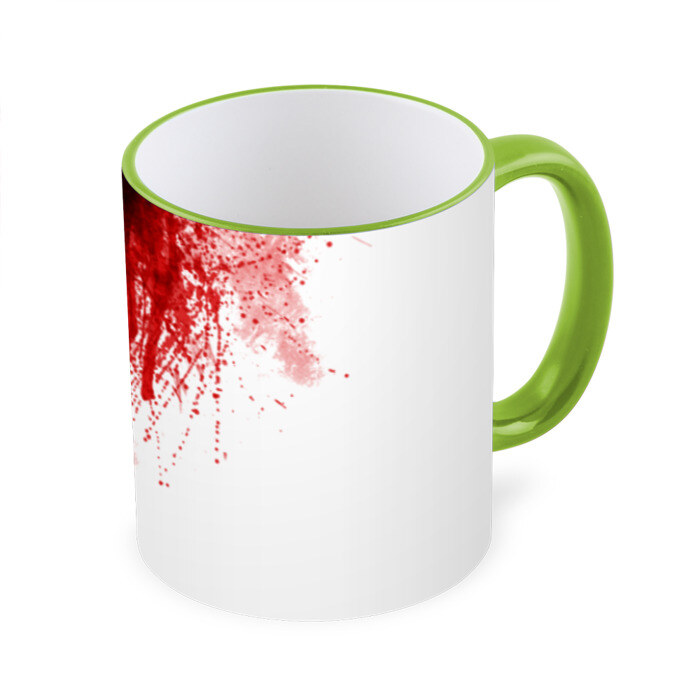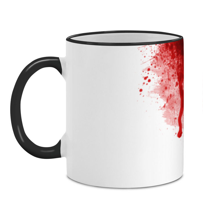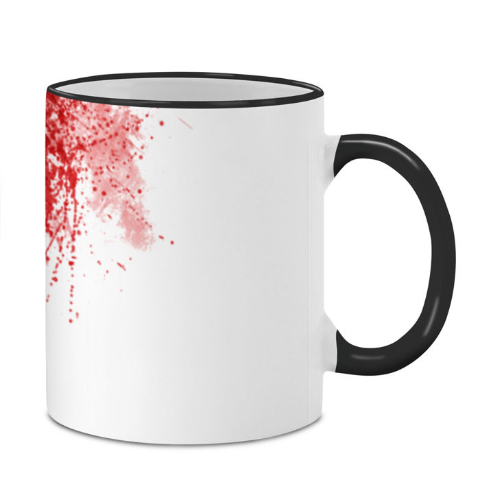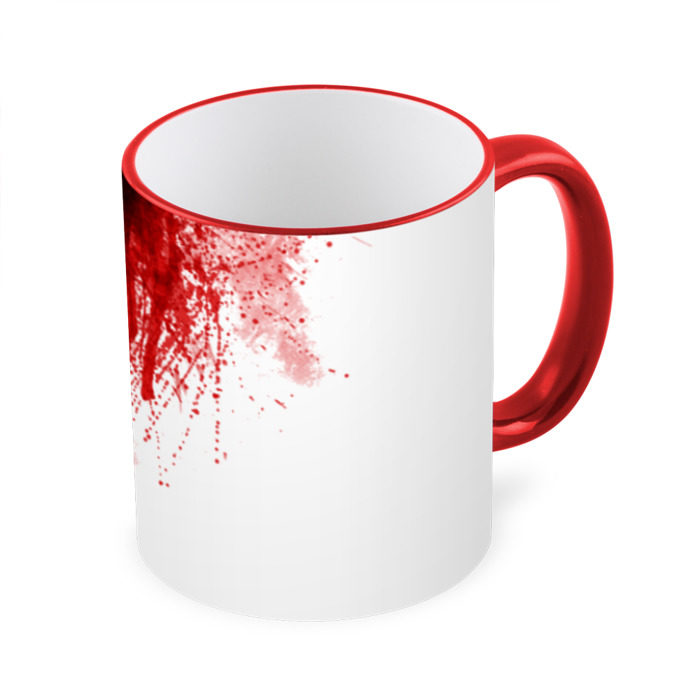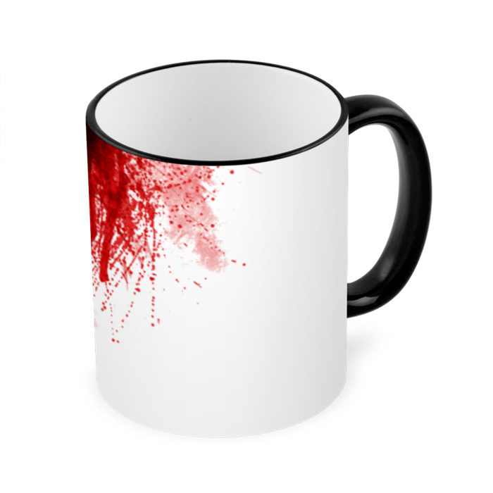 Кружка с принтом, который наносится по всей внешней поверхности, кроме прямоугольника у ручки. У кружки цветной ободок сверху и ручка. Можно заказать со своим дизайном.