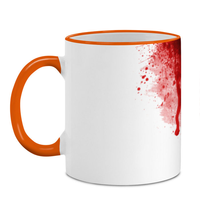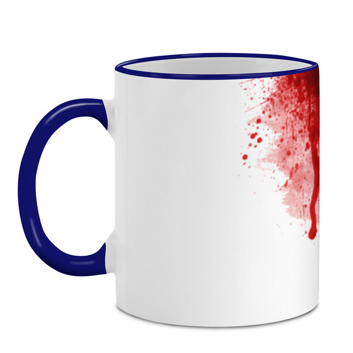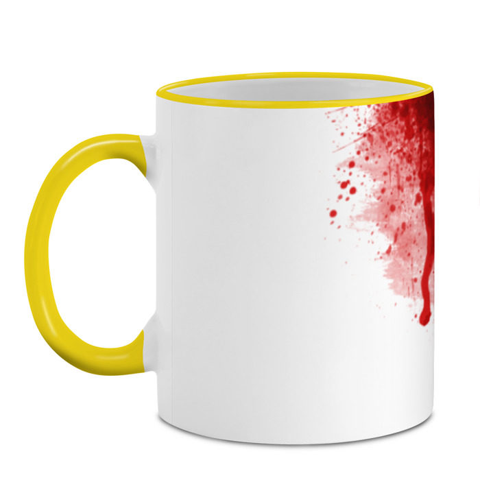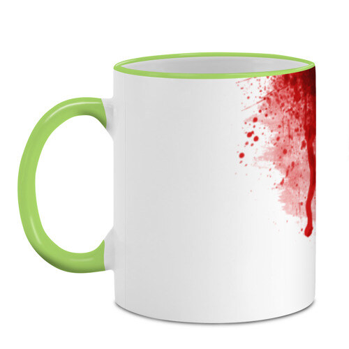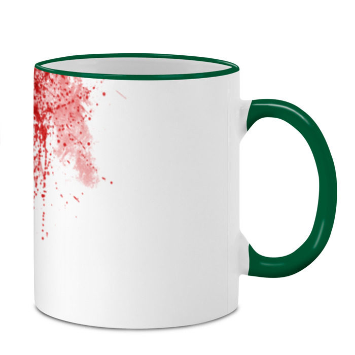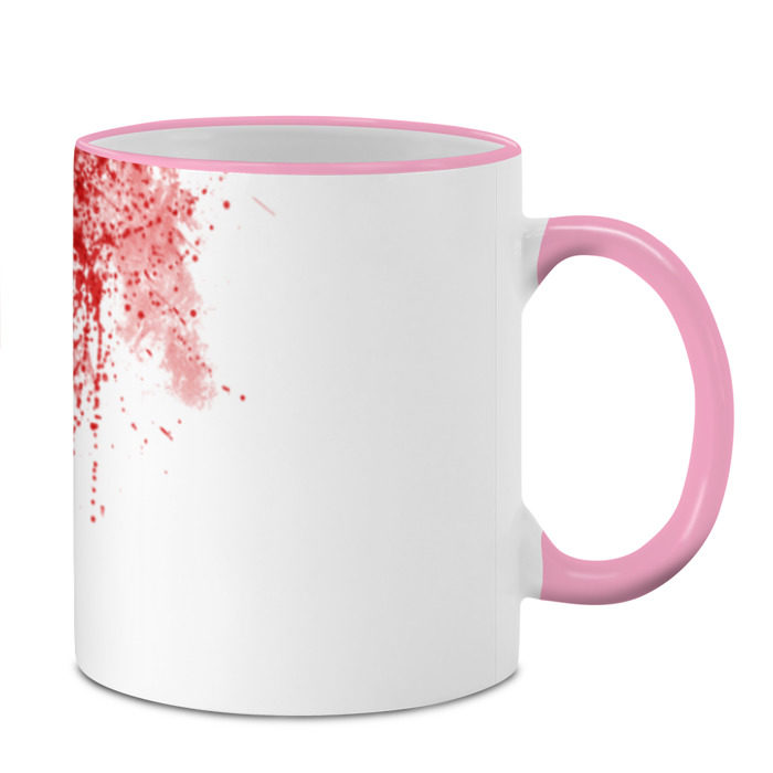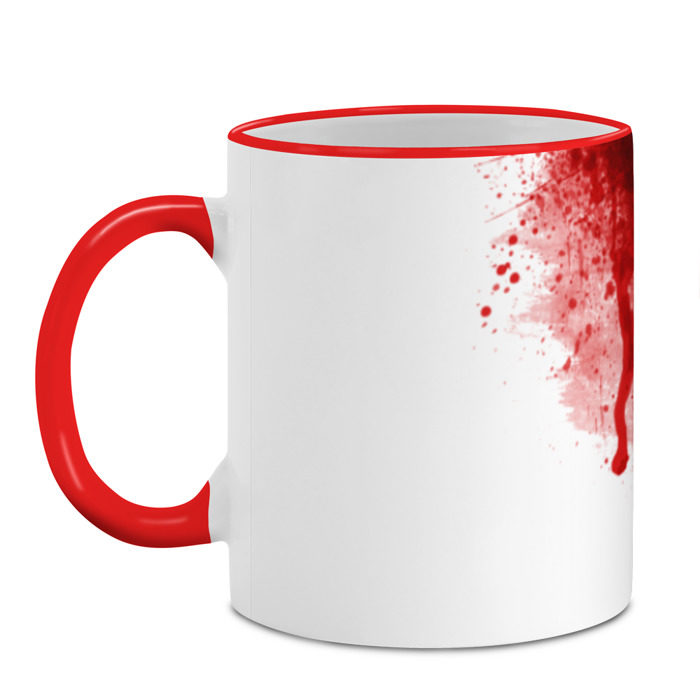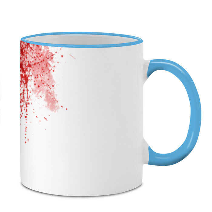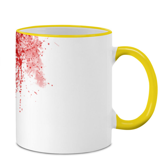Кружка с принтом, который наносится по всей внешней поверхности, кроме прямоугольника у ручки. У кружки цветной ободок сверху и ручка. Можно заказать со своим дизайном.