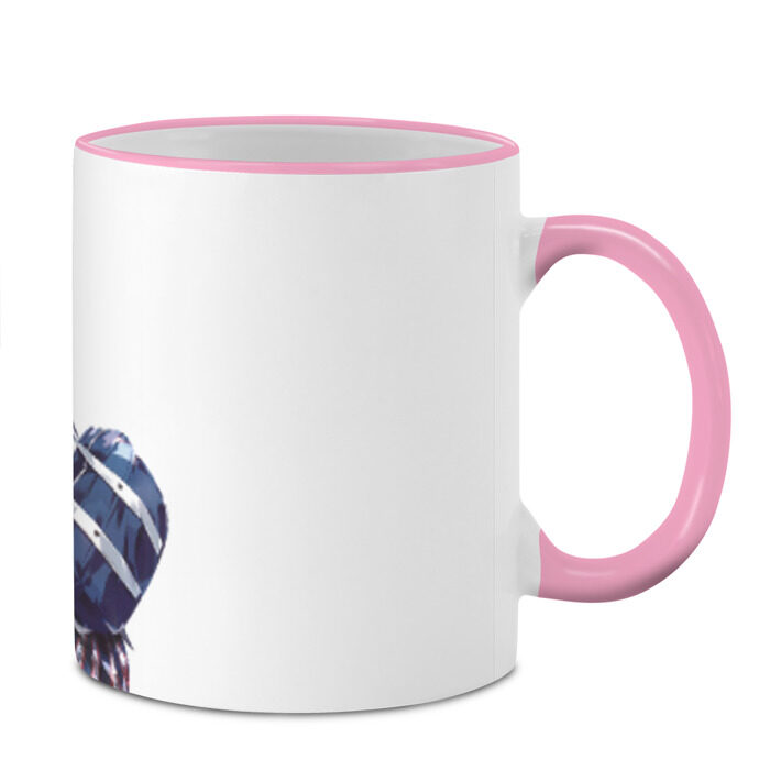 Кружка с принтом, который наносится по всей внешней поверхности, кроме прямоугольника у ручки. У кружки цветной ободок сверху и ручка. Можно заказать со своим дизайном.