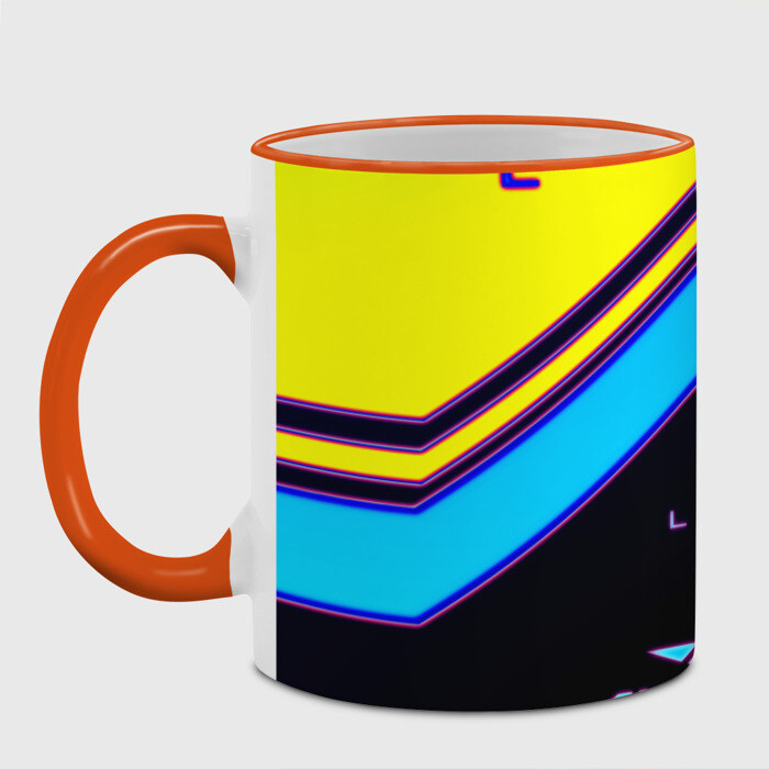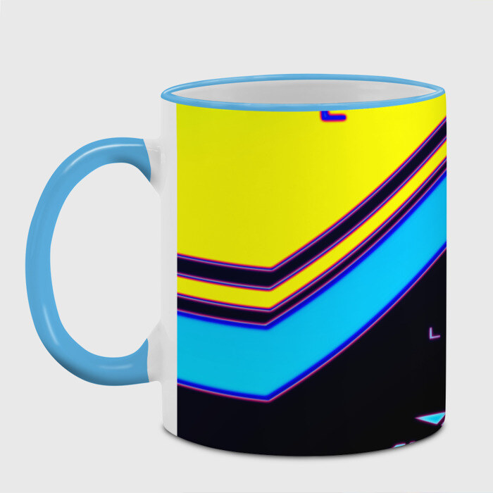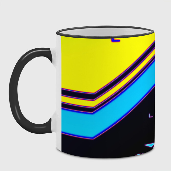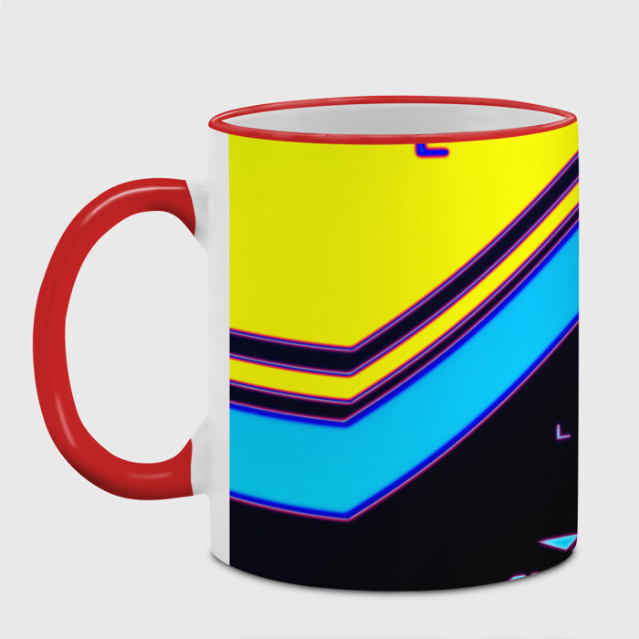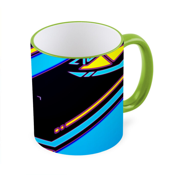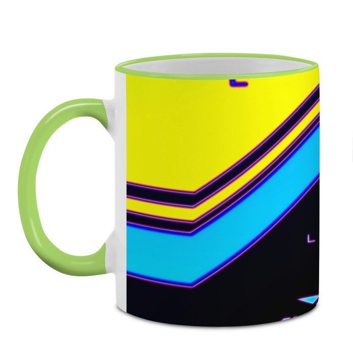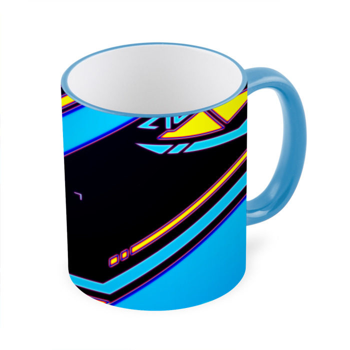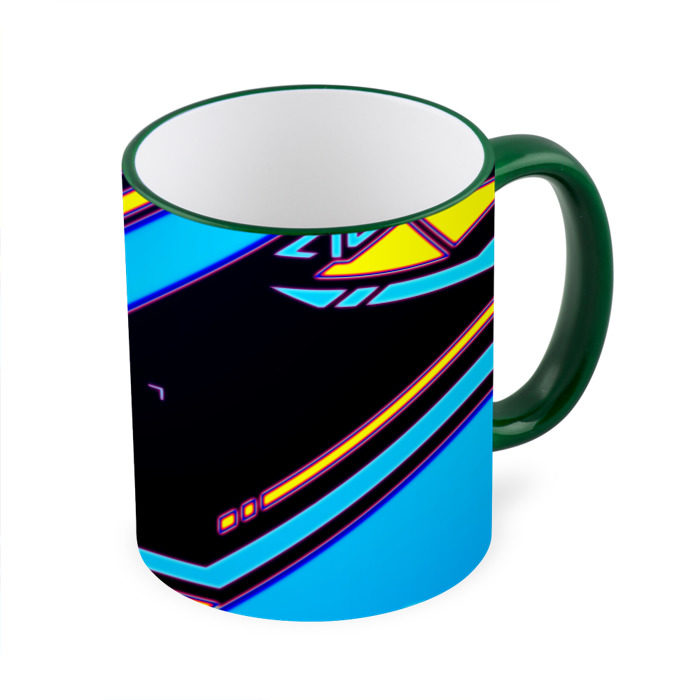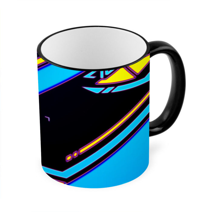 Кружка с принтом, который наносится по всей внешней поверхности, кроме прямоугольника у ручки. У кружки цветной ободок сверху и ручка. Можно заказать со своим дизайном.