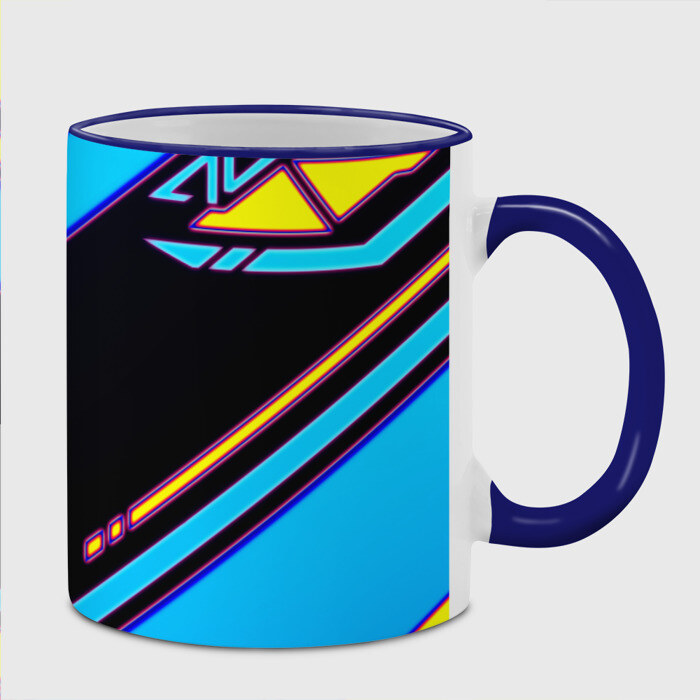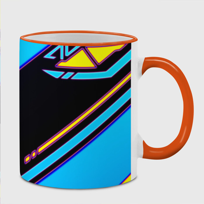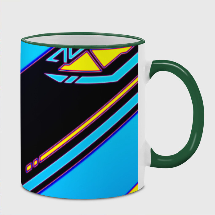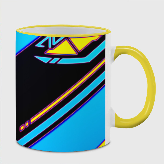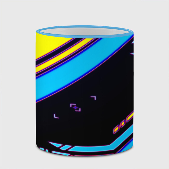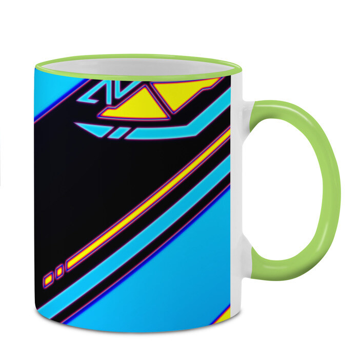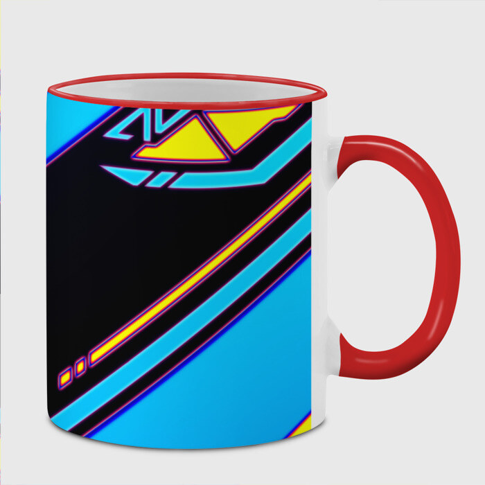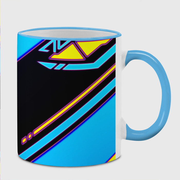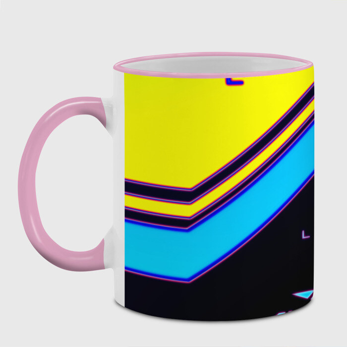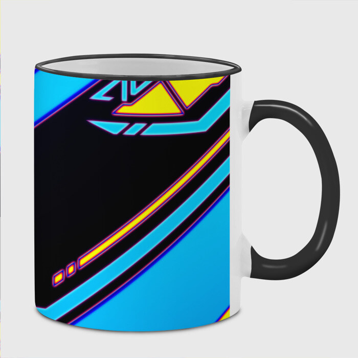 Кружка с принтом, который наносится по всей внешней поверхности, кроме прямоугольника у ручки. У кружки цветной ободок сверху и ручка. Можно заказать со своим дизайном.