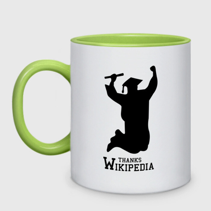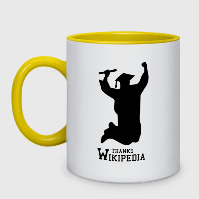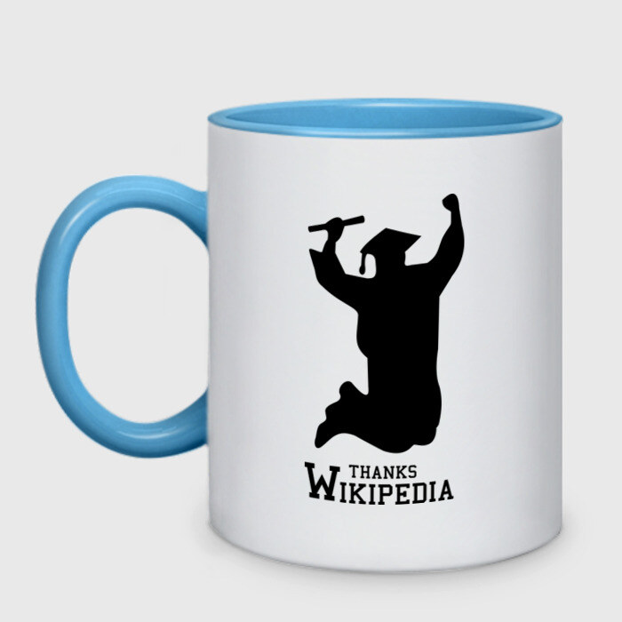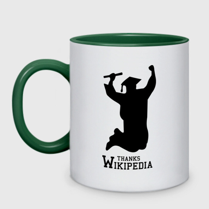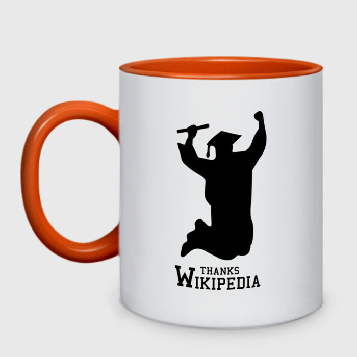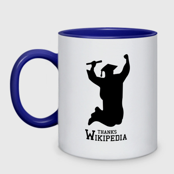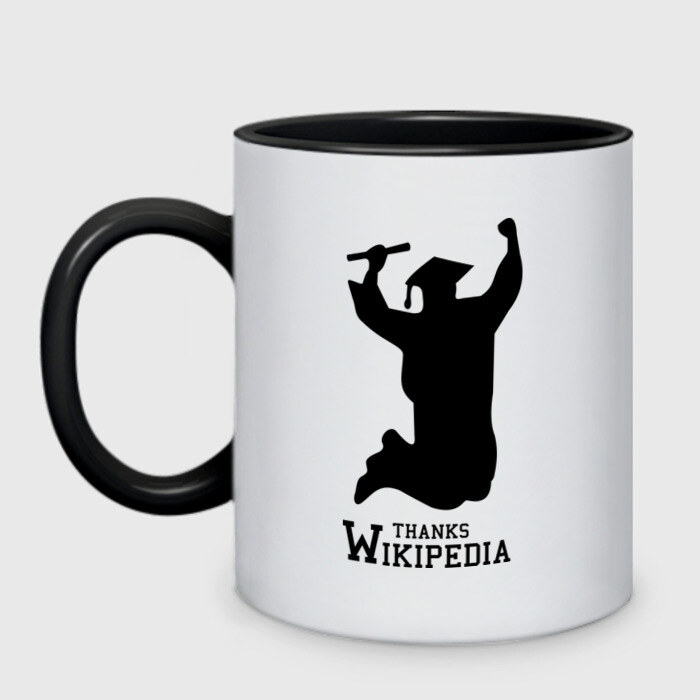 Кружка двухцветная с принтом THANKS WIKIPEDIA