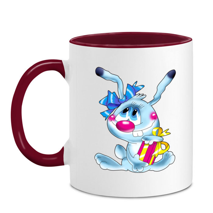 Кружка двухцветная с принтом ЗАЯЦ С ПОДАРКОМ