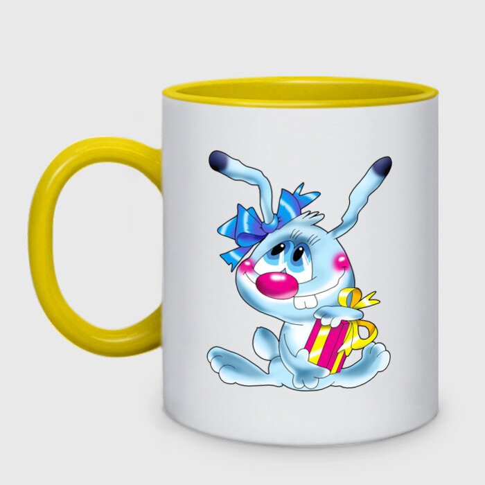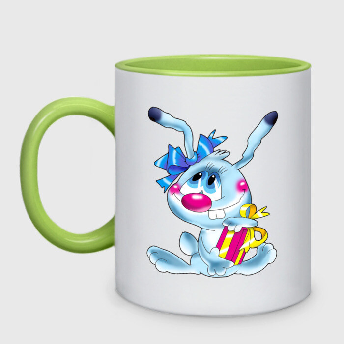 Кружка двухцветная ЗАЯЦ С ПОДАРКОМ